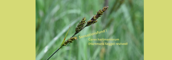 Was bedeutet der Fund? Die Hartmans Segge gedeiht an wechselfeuchten bis staunassen Standorten. Sie bildet lockerrasige Bestände in nährstoffarmen Feuchtwiesen und Mooren. Leider sind viele ihrer typischen Lebensräume durch Entwässerung, Grundwasserabsenkung, Nutzungsaufgabe oder intensive Nutzung stark verändert oder zerstört worden. Um die Hartmans Segge zu schützen, ist der Erhalt nährstoffarmer, wechselfeuchter Flächen entscheidend. Diese müssen extensiv genutzt werden. Das beinhaltet eine späte Mahd und den Abtransport des Mahdgutes, um einer Nährstoffanreicherung entgegenzuwirken (Aushagerung). Auch die erneute Nutzung von Wiesenbrachen kann der Art zugutekommen. Durch das Entfernen von Gehölzen und konkurrenzstarken Arten können diese Brachen den für die Art lebensnotwendigen, offenen Charakter zurückgewinnen.